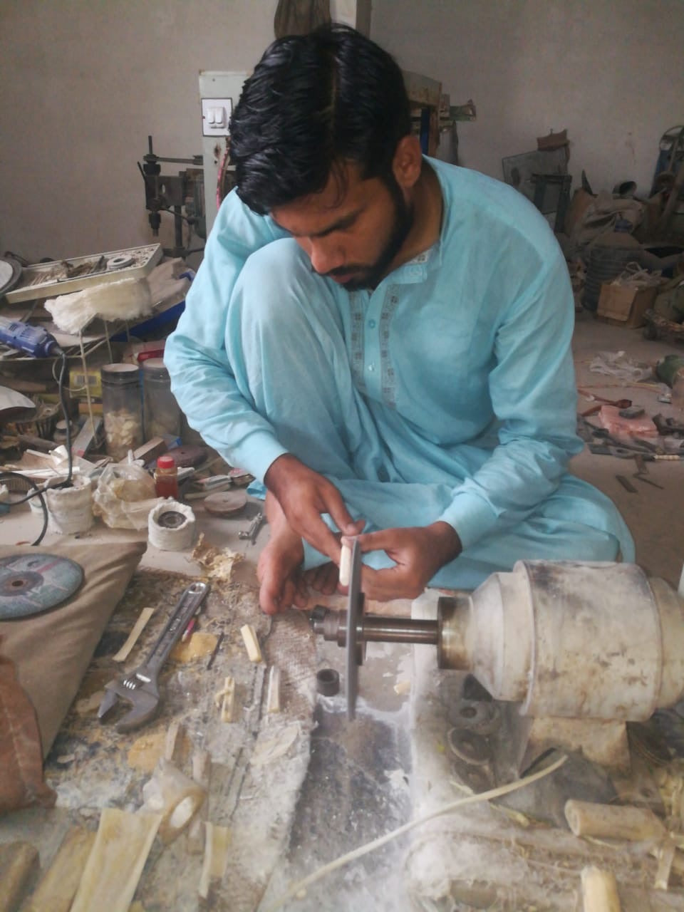 Camel bone craft is a distinctive and highly skilled art form rooted in the cultural traditions of Pakistan, particularly in the regions of Sindh and Punjab. Artisans use camel bone, a material valued for its smooth, ivory-like texture and natural resilience, to create intricate works of art. Traditionally sourced from naturally deceased camels, the bone is repurposed into decorative objects, fine jewelry, and intricate inlay designs. What sets camel bone craft apart is the level of detail and precision involved in transforming this raw material into luxurious, handcrafted pieces that merge both age-old techniques and modern innovation. The bone’s delicate appearance, combined with the artisan’s skill, gives each piece a sense of timeless elegance.