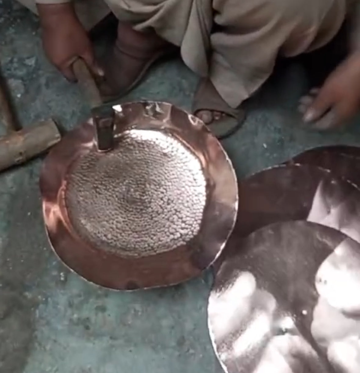 Hammering is a traditional metalworking craft that involves shaping and decorating metal surfaces through the precise use of hammers. This ancient technique is widely practiced in Pakistan, particularly in areas known for their metal crafts, such as Lahore and Peshawar. Hammering is used to create both functional and decorative items, ranging from household utensils to intricate art pieces.
