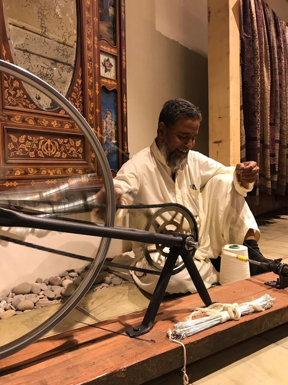 Artisans carefully prepare threads, choosing materials like cotton, wool, or silk based on the desired texture and durability.