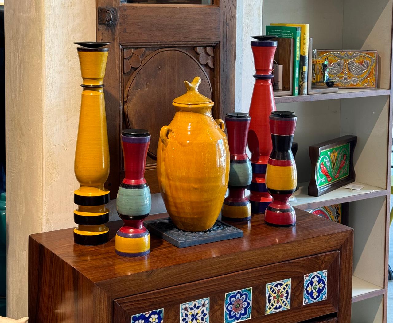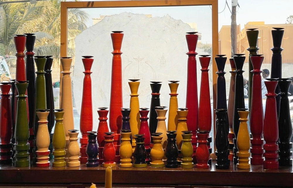 Jhandri is an essential part of Pakistan’s woodworking tradition, especially in regions like Chiniot, known for its master woodworkers. The craft is often used to create furniture components such as chair legs, table bases, and bedposts, as well as smaller decorative items like vases, candle holders, and spindles. These pieces are often passed down through generations, symbolizing the continuity of artisanal heritage and craftsmanship. In rural areas, Jhandri work is also tied to traditional household practices, where hand-turned objects are used in daily life.