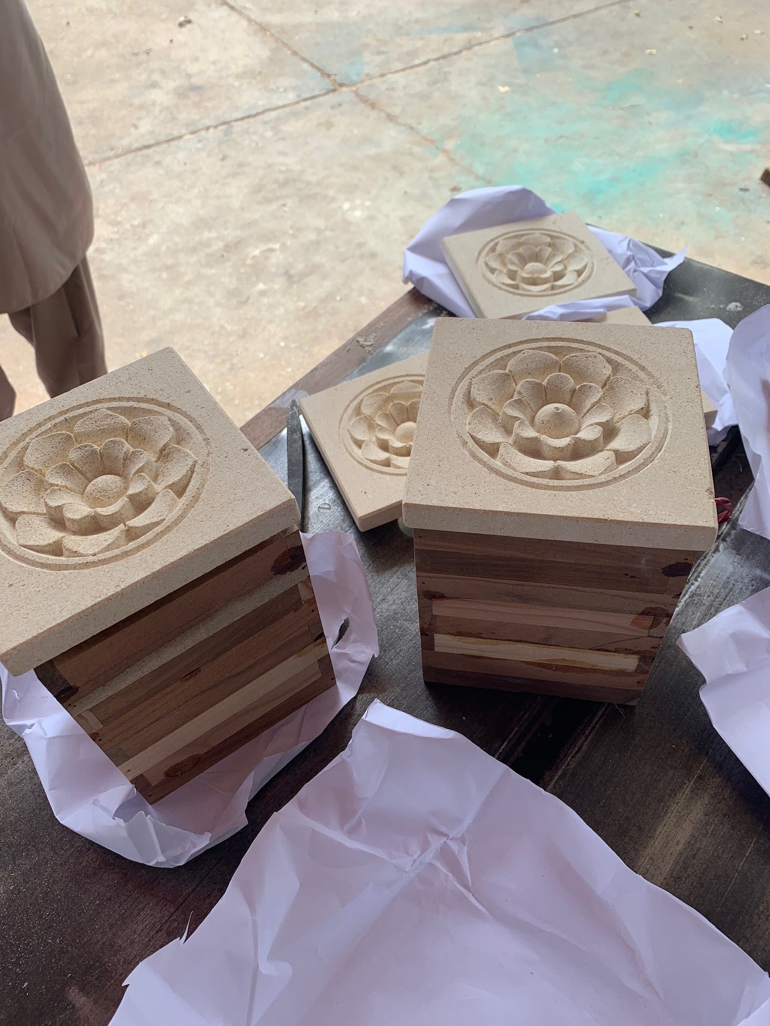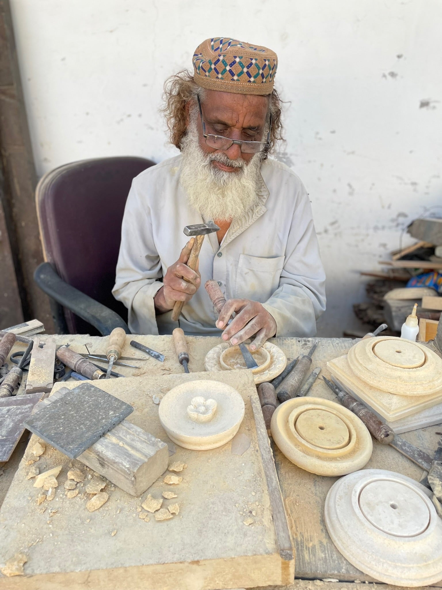 Using traditional tools such as chisels, hammers, and mallets, craftsmen meticulously carve the stone into intricate geometric, floral, and calligraphic designs. The precision involved in shaping each detail reflects the artisan’s skill and connection to centuries-old techniques. Carvings often include Islamic motifs such as arabesques and arches, showcasing the craft's deep cultural and spiritual roots.