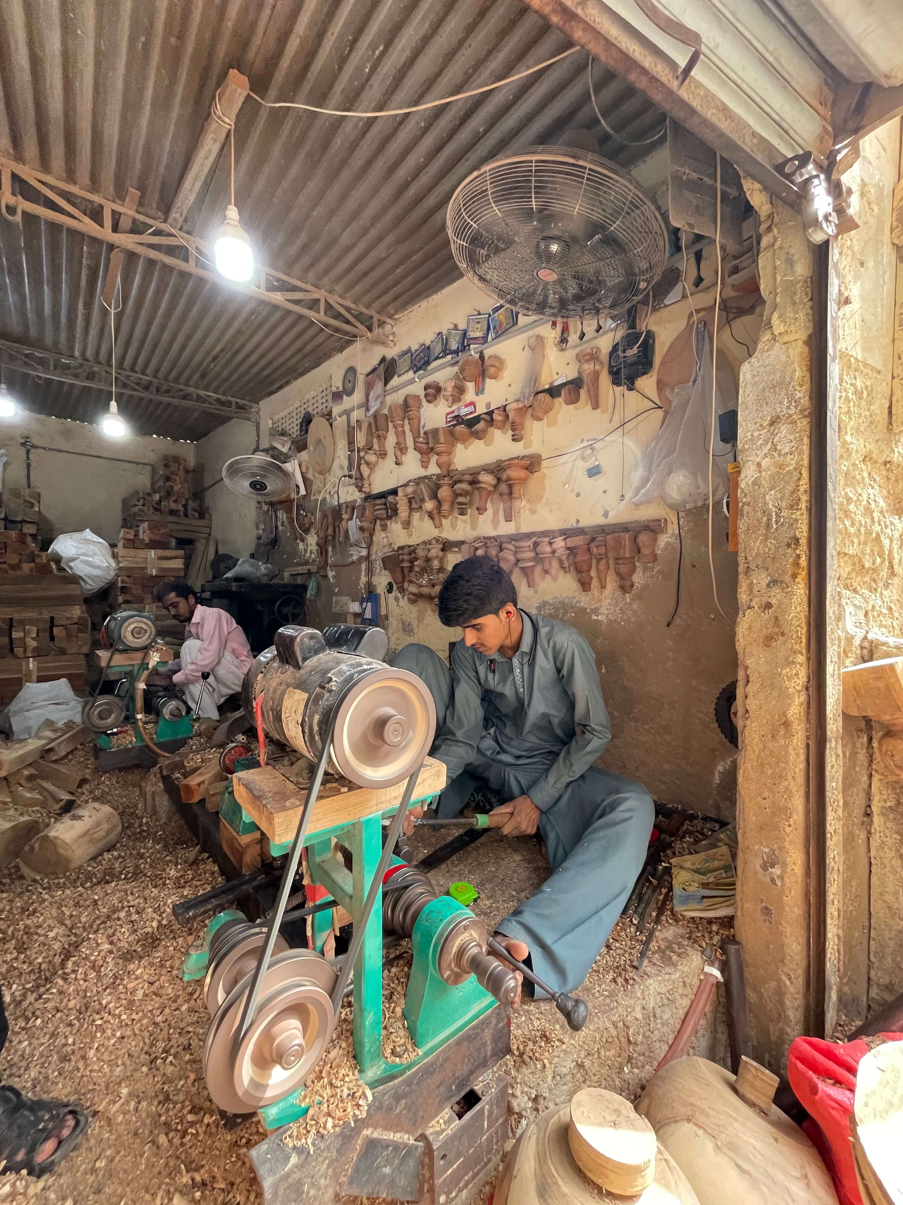 The hallmark of Khirad, wood turning involves shaping the wood on a lathe to create symmetrical, detailed designs such as balusters, spindles, or decorative legs.