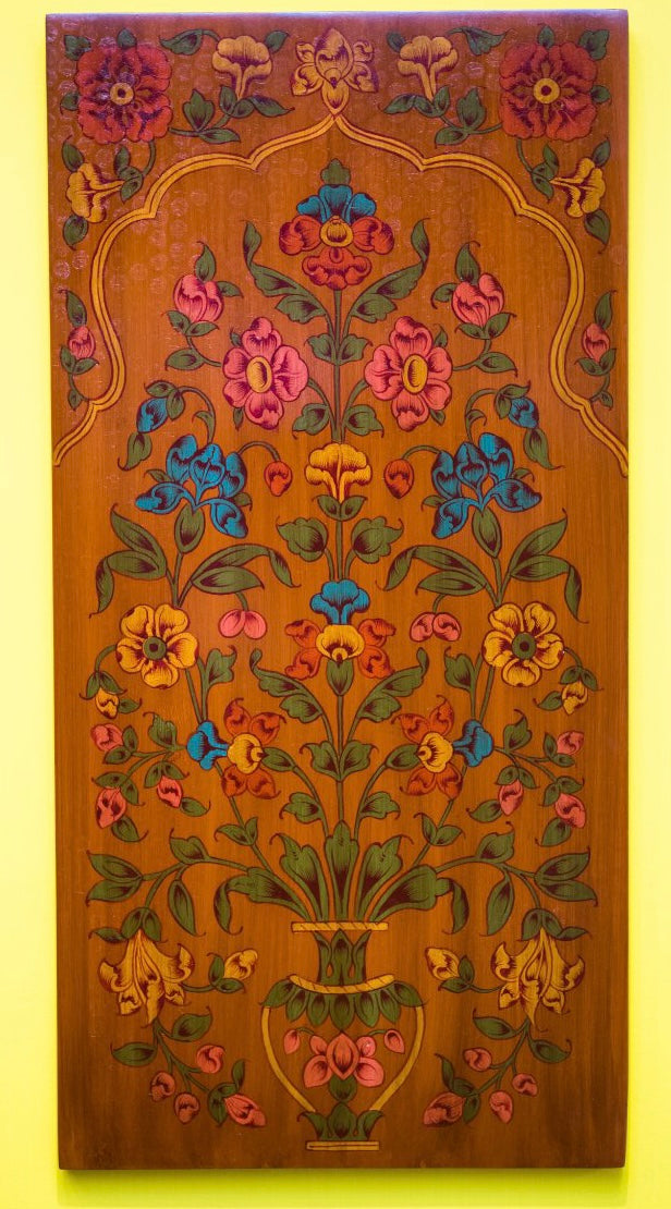 Using fine brushes or chisels, artisans create detailed patterns, often inspired by Mughal, Persian, and Islamic art traditions. Common designs include floral vines, arabesques, and calligraphy, reflecting cultural influences.