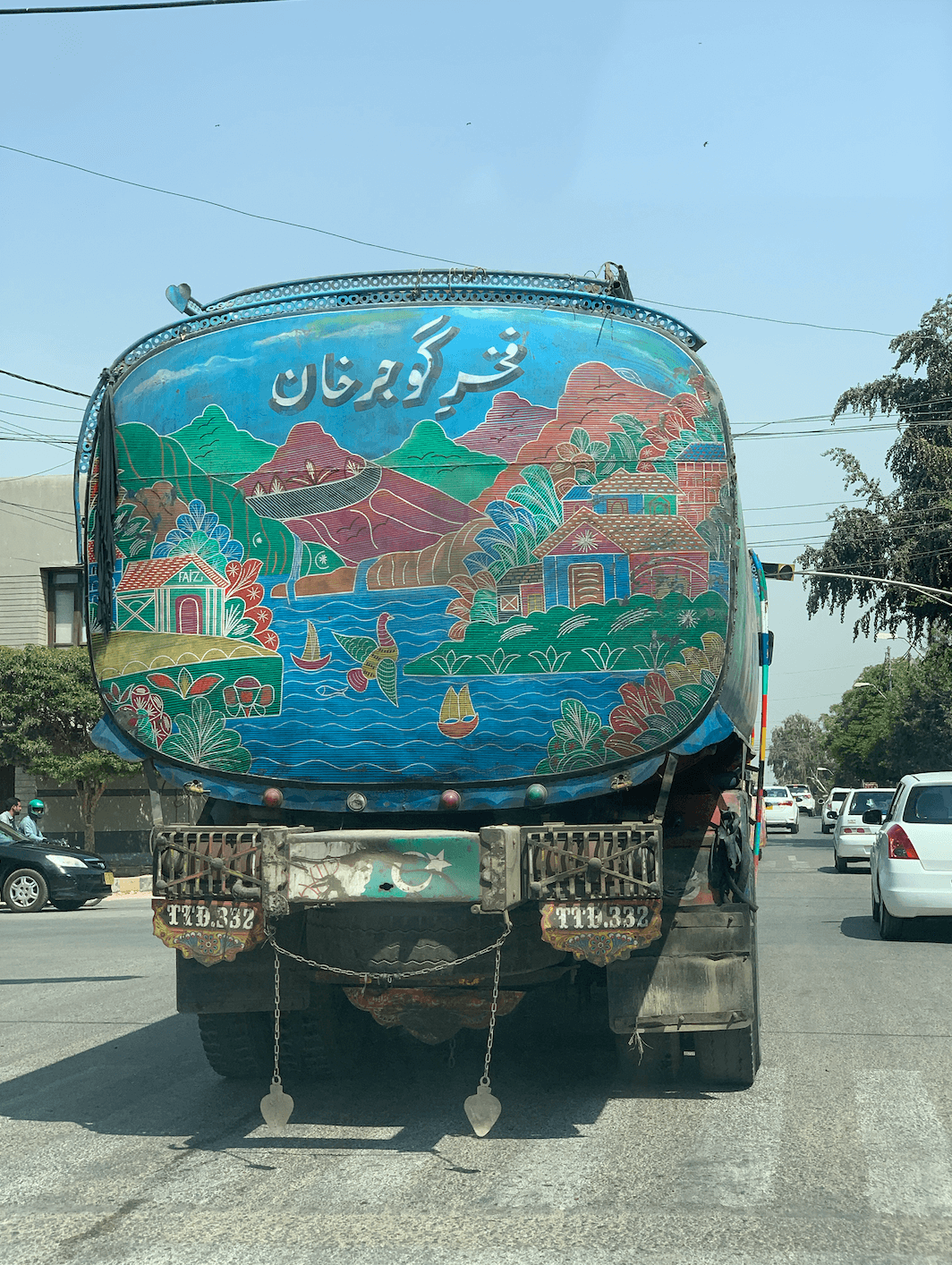 Truck Art is a form of self-expression for drivers and a celebration of Pakistan's artistic heritage. It's common to see messages of pride, humor, and faith incorporated into the designs, making it a living art form.