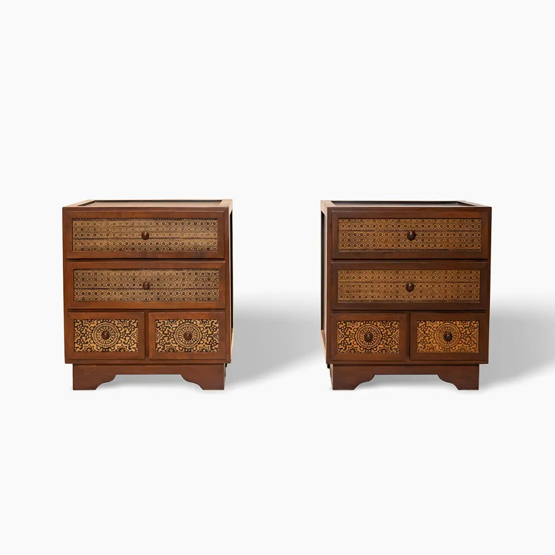 The Ajrak Storage Drawers feature intricate Ajrak engraving, blending contemporary design with cultural heritage. With multiple drawers for storage, this piece features the timeless beauty of traditional Sindhi motifs, adding character to any space.