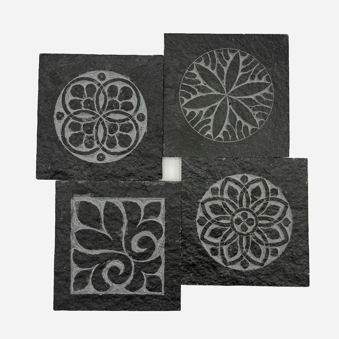 The Chitarkari Coaster is meticulously handcrafted from schist/slate stone, known for its remarkable layering and mined from the ancient bedrock of the northern regions of Pakistan.